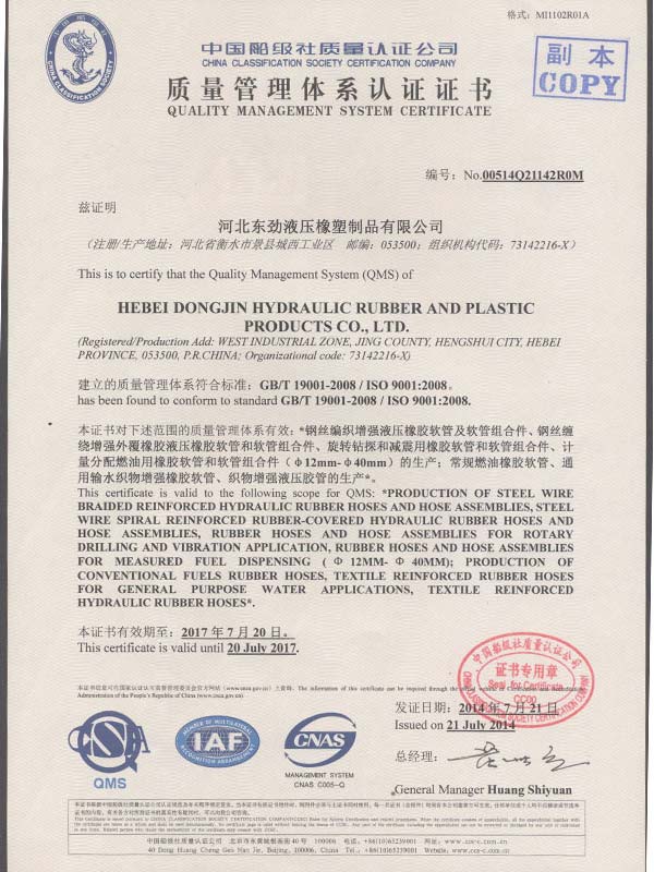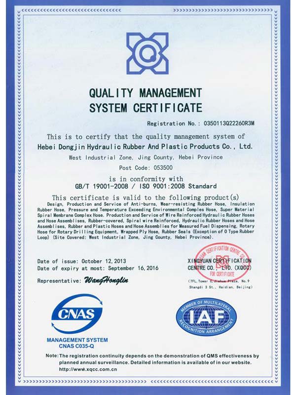 注冊資金7000萬,生產(chǎn)設備300多臺套,檢測設備300多臺件,膠管900萬標米,各類管件接頭2億余件,膠管組合件1億余套。