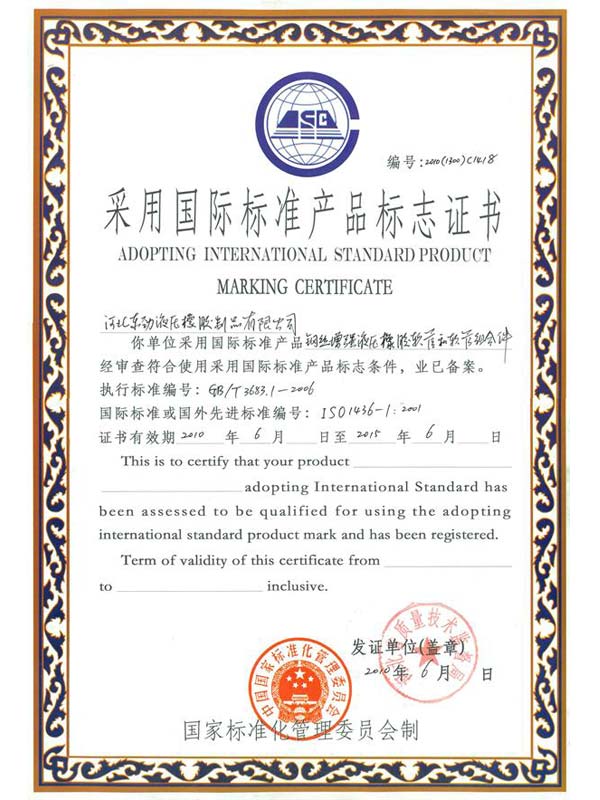 • 鋼絲纏繞管國際標準產(chǎn)品標志證書